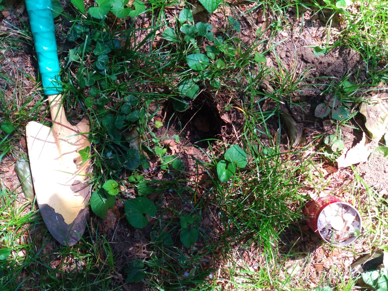 -place it vertically (the open part up) in a small hole just a very