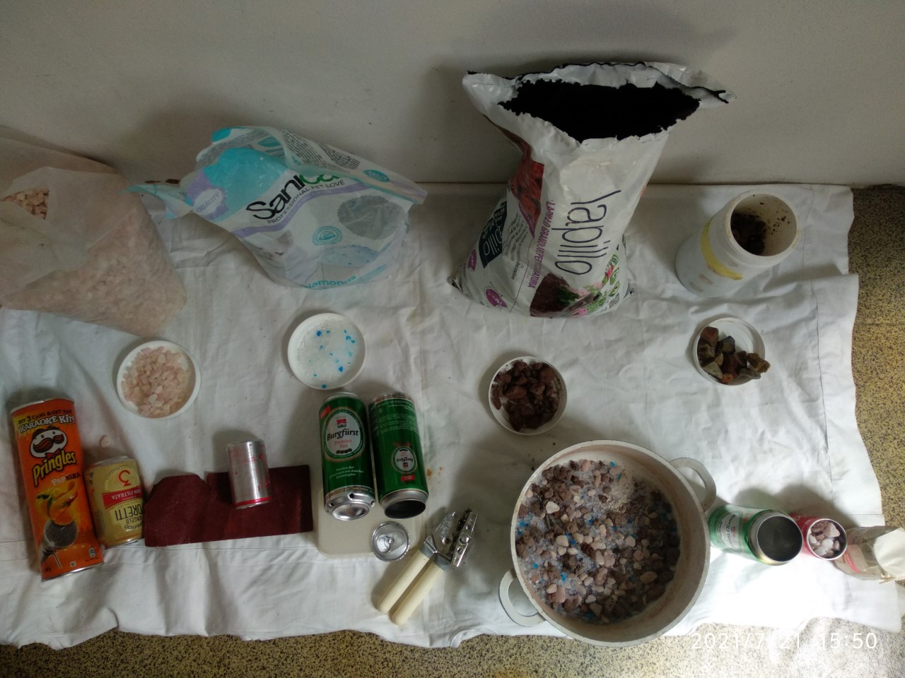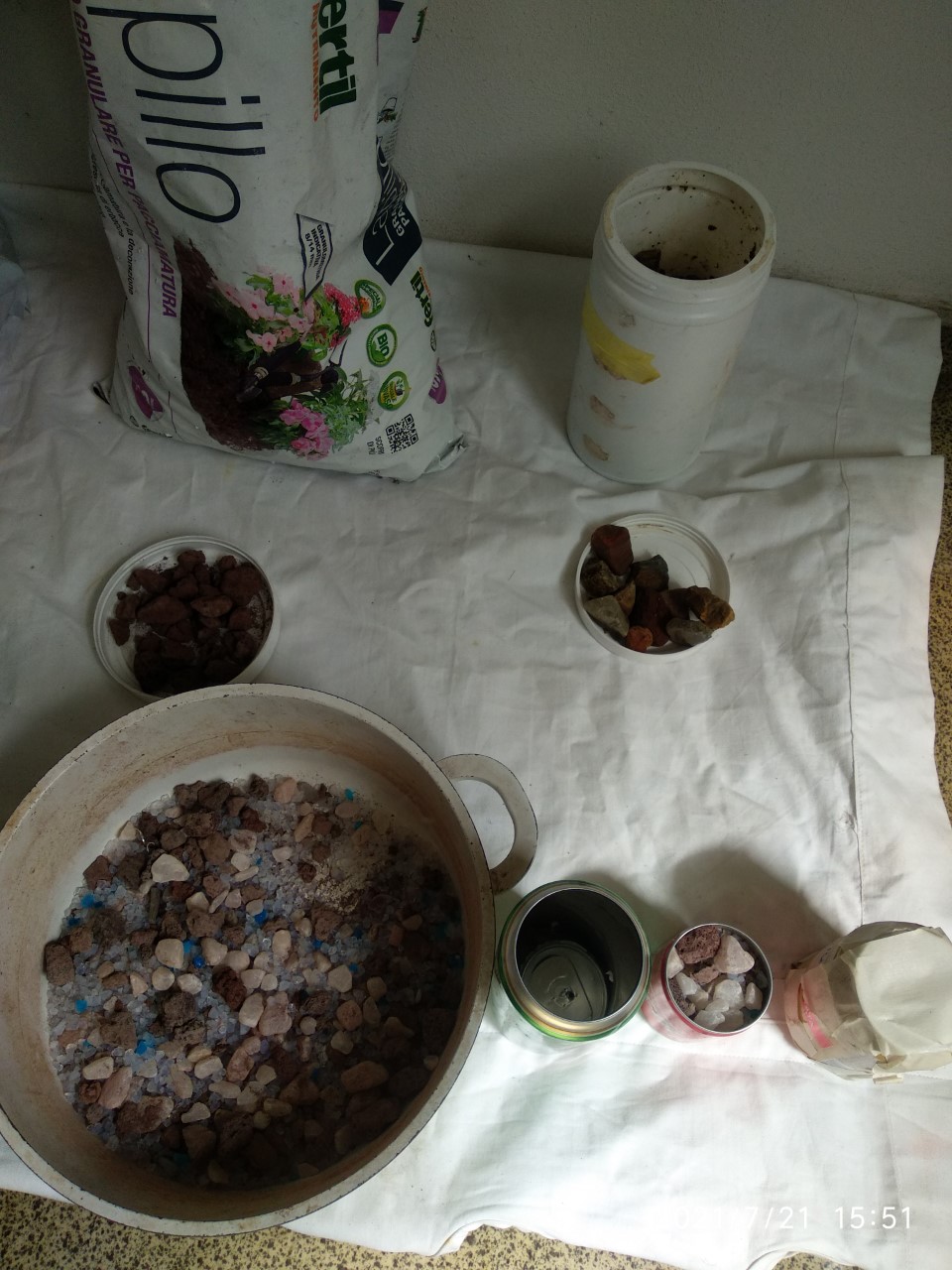 lapilli, silica granules for cats litter (about one third each of the three