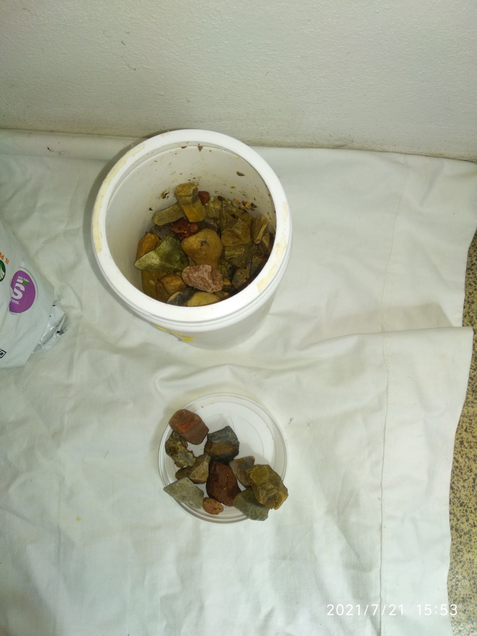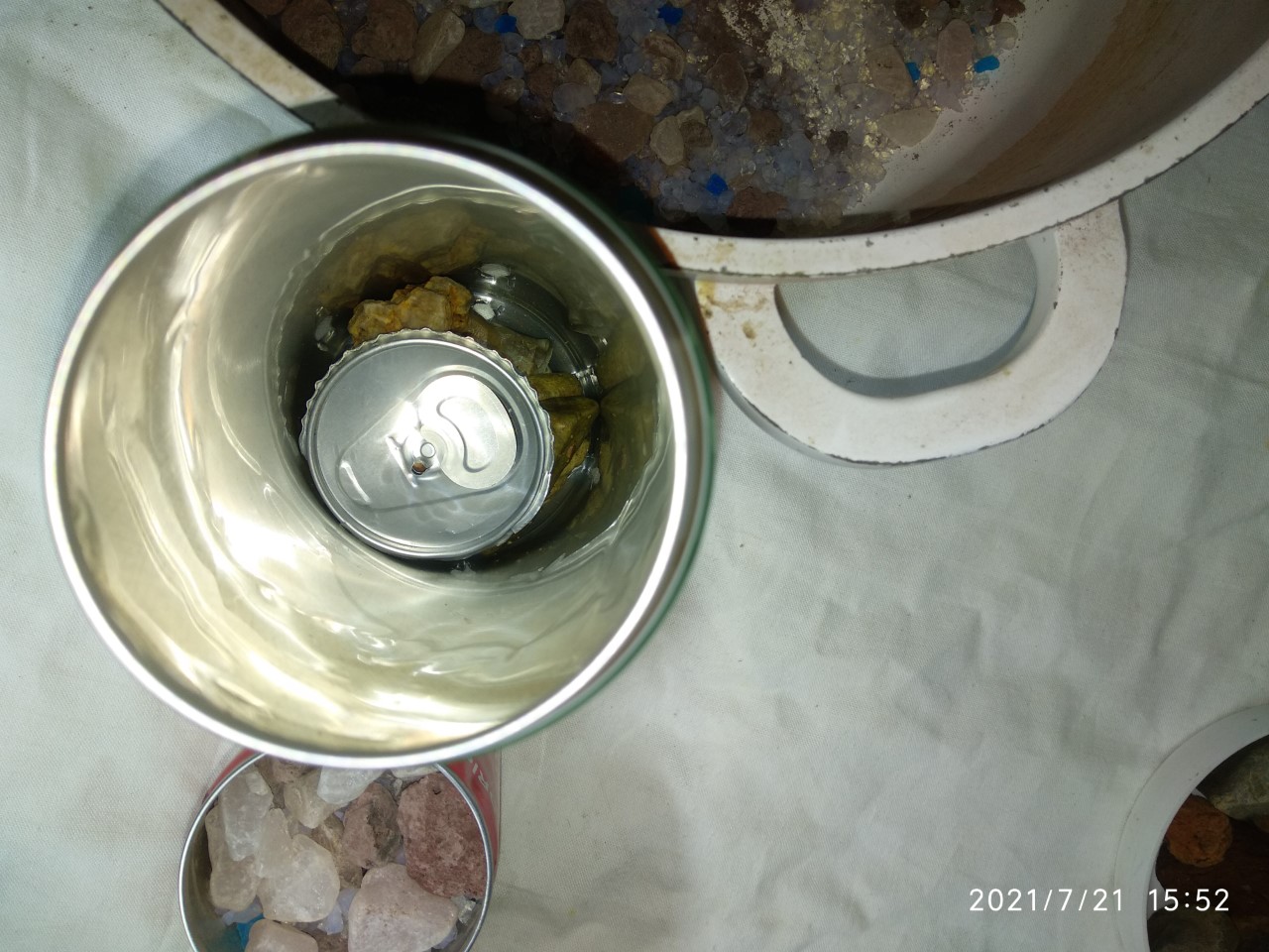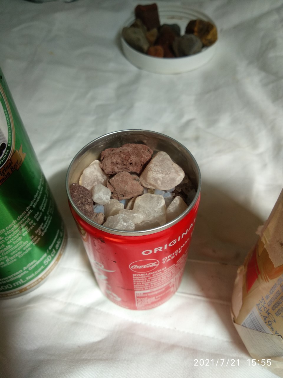 -fill the can with small un-tumbled quartz pieces mixed with volcanic